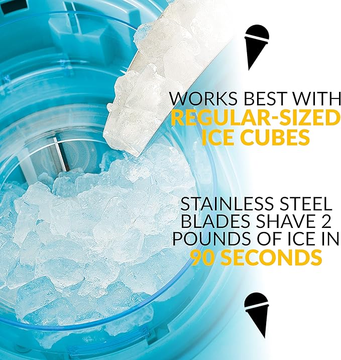 STAINLESS STEEL CUTTING BLADES: The precision-cut stainless steel cutting blades equipped with this ice shaver machine work quickly and efficiently to shave ice cubes into delicious, fluffy snow-like ice.